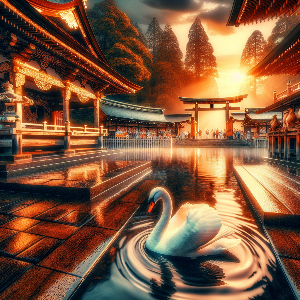 大鳥大社は、白鳥伝説以外にも、いくつかの謎やミステリーを秘めていると言われています。例えば、白鳥が伊勢からこの地へ飛来したルートは、春分の日と秋分の日に太陽が昇る場所と沈む場所を結ぶ「太陽の道」と一致すると言われ、古代の天文知識との関連性が指摘されています。