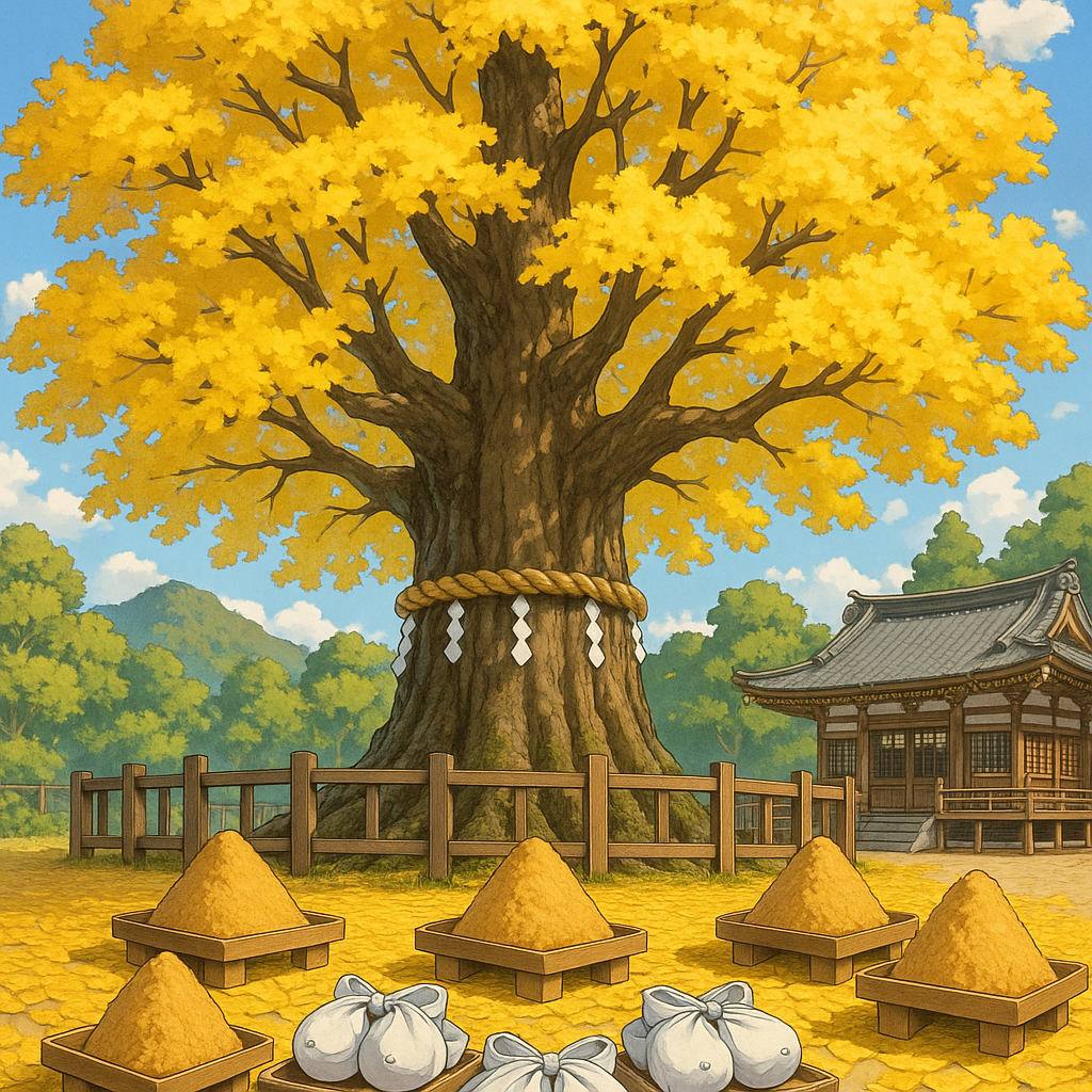 境内には、樹齢1200年を超えるといわれる巨大なイチョウの木があります。これは、空海が植えたと伝えられており、県の名木百選にも選ばれています。このイチョウは、母乳の出ない女性が厚い信仰を寄せていることでも知られています。出産した女性が、乳の出を祈願し、米ぬかと白布で作った模型の乳房を奉納する風習が残っています。