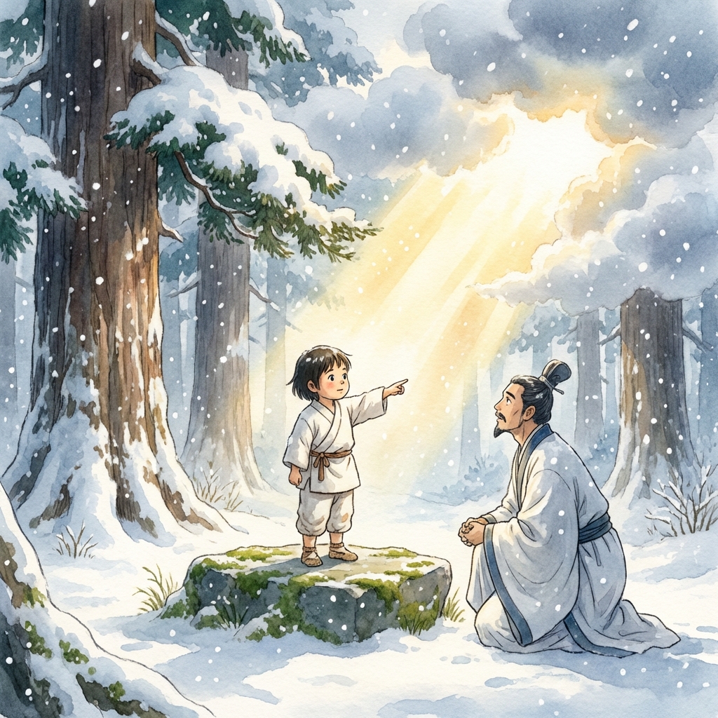 神社の創建には不思議な伝説が残っています。558年、当時の国司が阿蘇神社へ参拝しようとした際、大雪に見舞われ道に迷ってしまいました。その時、どこからともなく三歳ほどの童子が現れ、「ここに阿蘇の神を祀り、西向きに社を建てよ。そうすれば異賊(新羅など)を防ぎ、国を護らん」と告げたといいます。