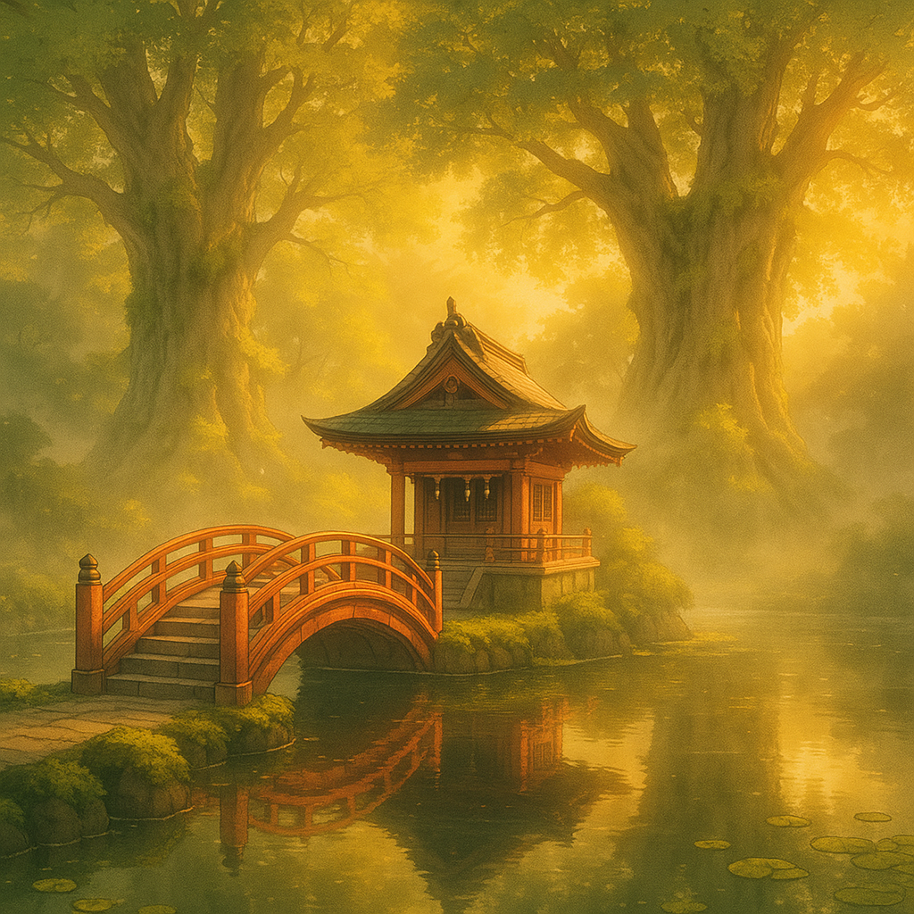 神社は神池に囲まれた神島に位置し、神橋を渡って参拝する独特の構造をしています。この神池は、国土を表す象徴とも考えられています。境内には樹齢約800年の夫婦欅があり、夫婦円満や子宝安産のご神木として信仰を集めています。