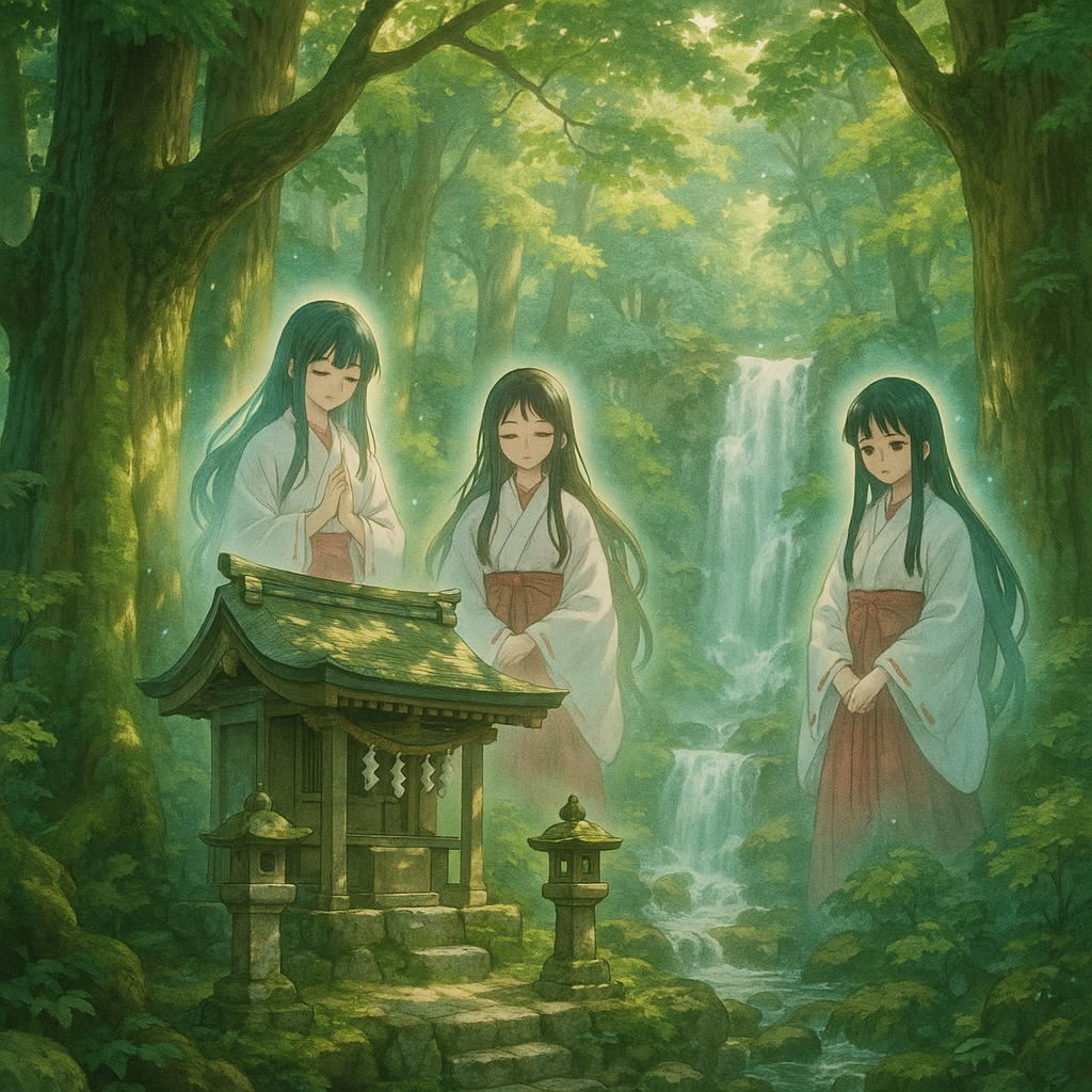 祭神は市杵島比売命(いちきしまひめのみこと)、多岐理毘売命(たぎりびめのみこと)、多岐都比売命(たぎつひめのみこと)の三柱。これは宗像三女神であり、隠津島神社は宗像大社の分霊を勧請したとされることから、その境内配置を模して創建されたと考えられています。かつては布引山南麓の滝の傍にあった峡岩の頂と、三代にあった沼地の畔に祠が設けられていたと伝えられていますが、現在は三代の社とご本社のみが残っています。
